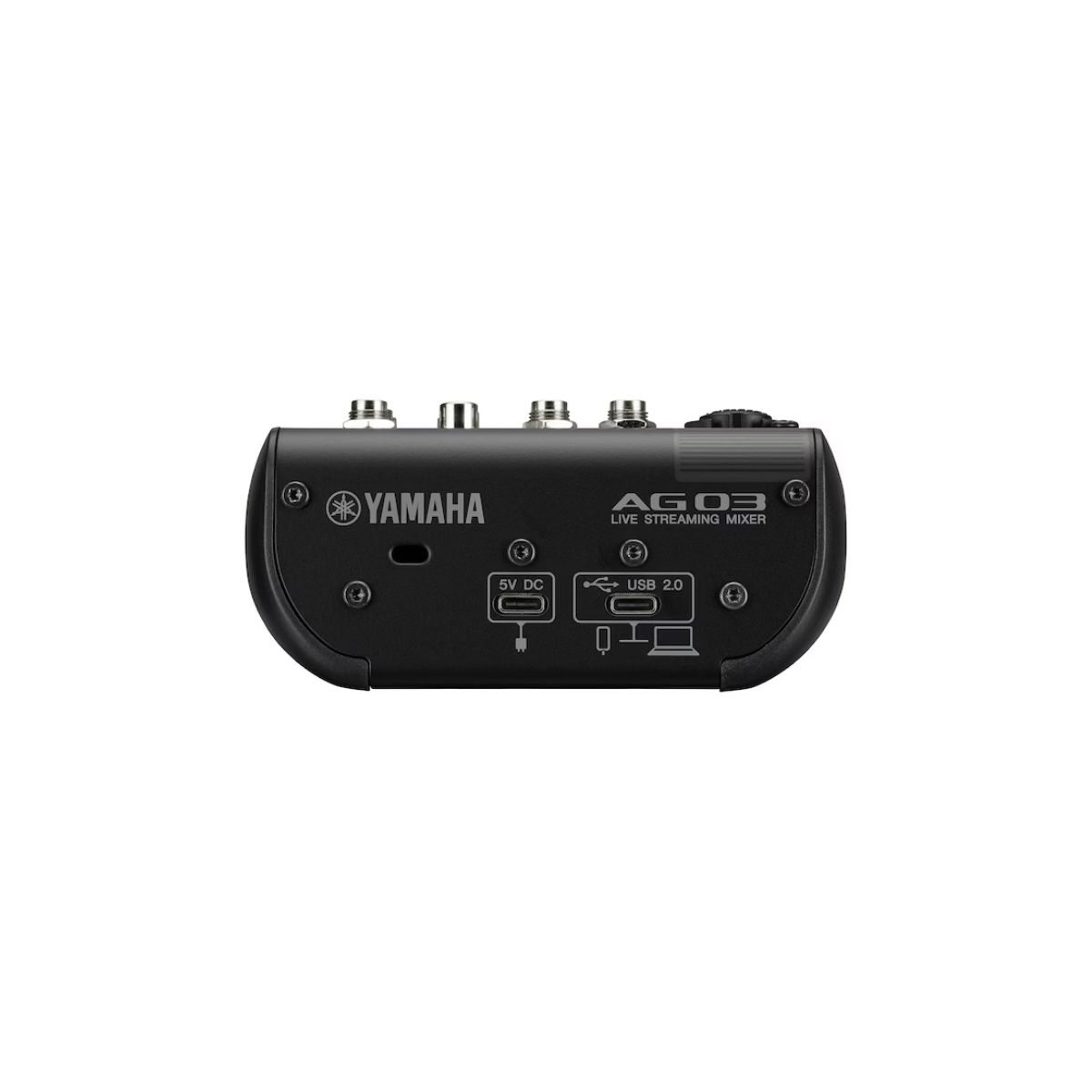 Interfaz de audio y mezclador compacto Yamaha AG03MK2, de 3 canales, con preamplificador XLR, entrada Hi-Z, funciones de loopback y conectividad USB-C para streaming y grabación profesional.