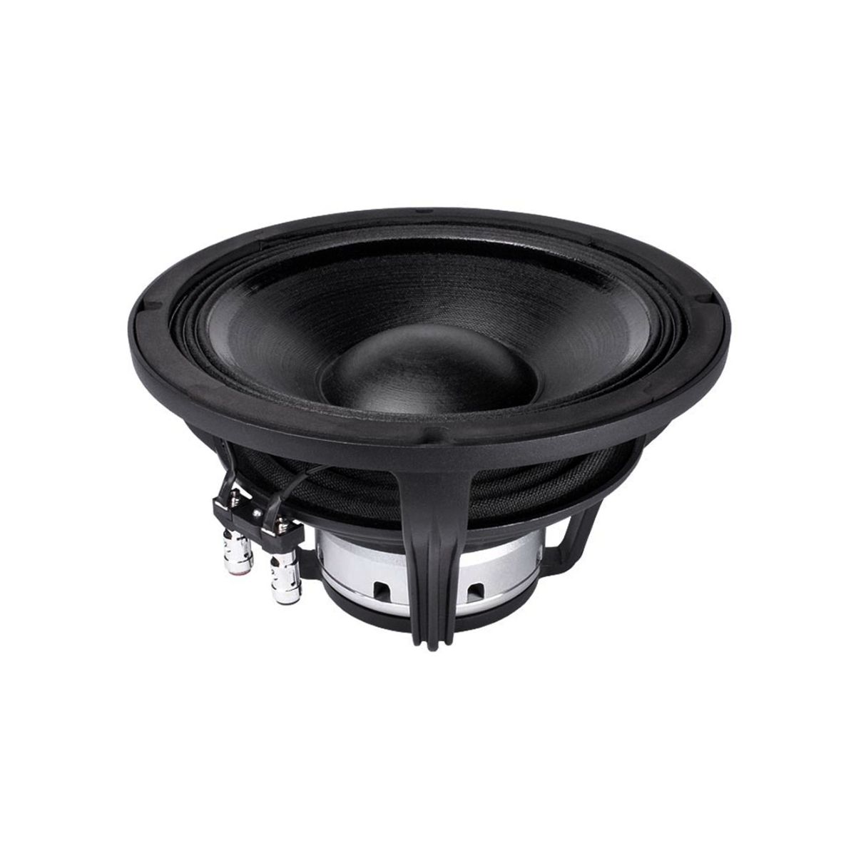 Woofer profesional de 10 pulgadas con motor de neodimio y potencia de 1200 W, diseñado para aplicaciones de bajos medios que requieren alta sensibilidad, gran control dinámico y peso reducido.